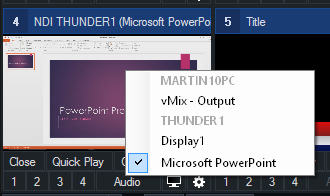 In the screenshot above, Microsoft PowerPoint is running on a laptop called "THUNDER1" and can be added to vMix simply by double clicking it from the list.